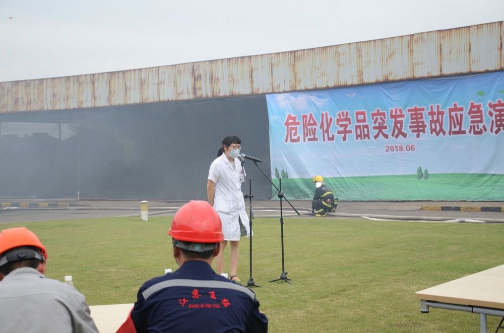 公司啟動(dòng)應(yīng)急預(yù)案后,防化搶險(xiǎn)組第一個(gè)沖到現(xiàn)場(chǎng)